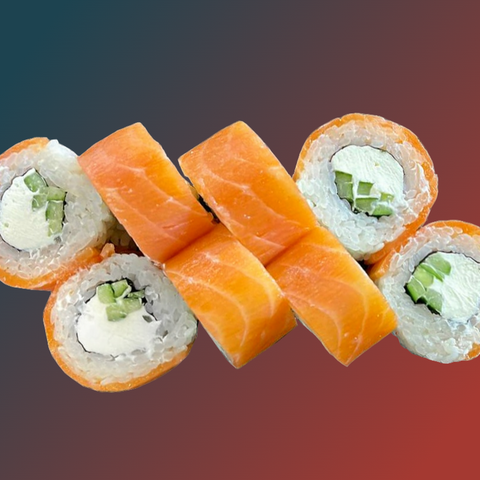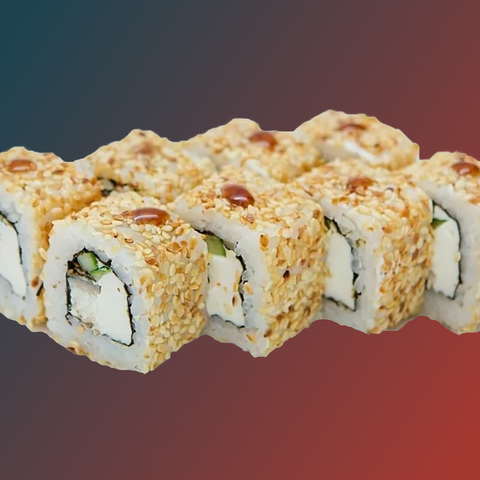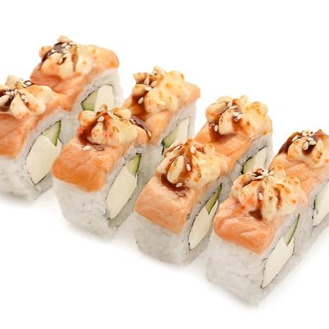 Рис,нори,сыр,огурец,лосось,запеченный соус,унаги