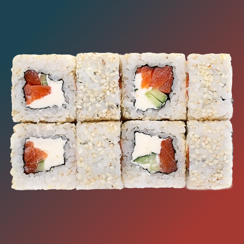Рис,нори,сыр,огурец,лосось,запеченный соус,унаги